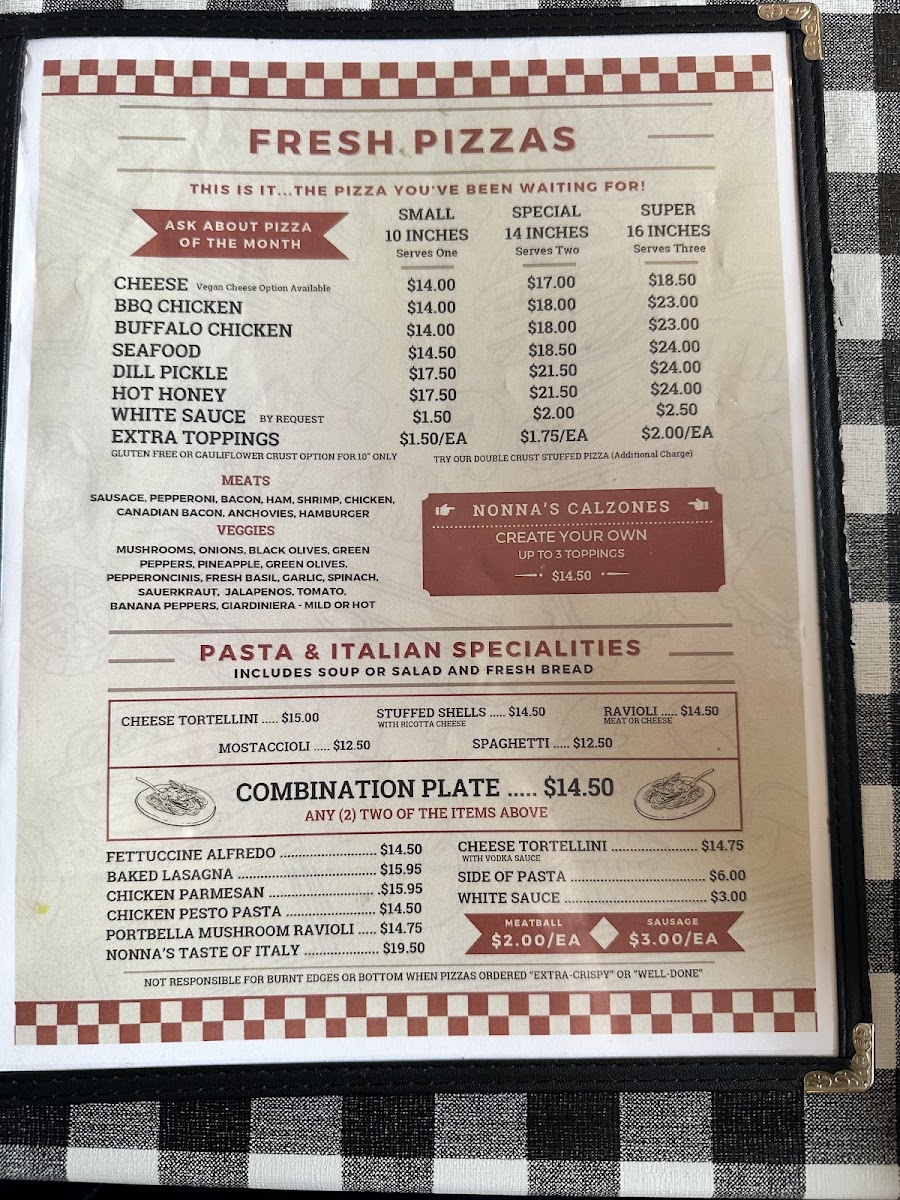 Nonna’s Pizzeria and Pub Menu